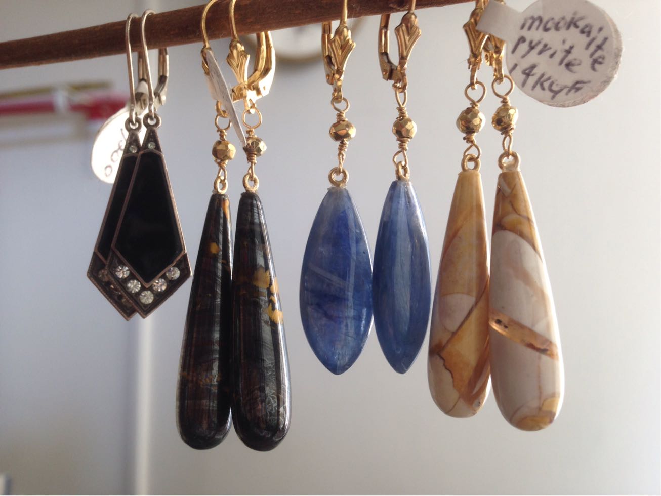右から1.ムーカイト、パイライト、2.ブルーカルソイト、パイライト 3.アイアンタイガー、パイライト 4.ヴィンテージ、オニキス、シルバー
