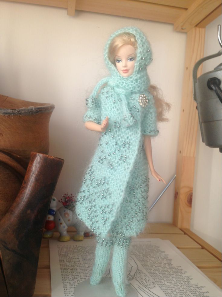 リトアニアの伝統的な手法を取り入れたモヘアのコートと耳当て、靴下のセットです。