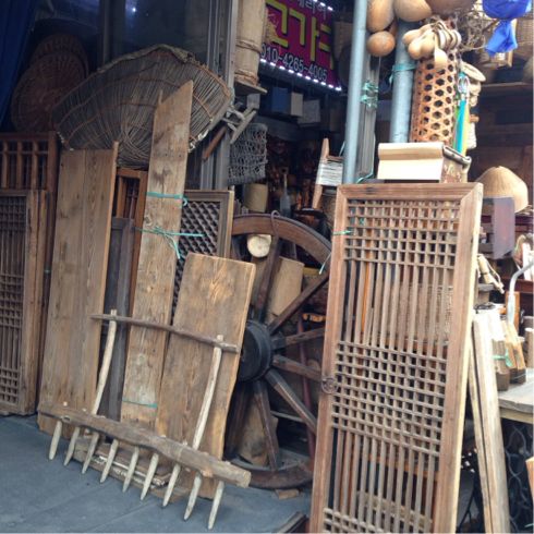 韓国に行ってきました。もちろん古い物もチェックしてきました。見れる日が一日、日曜だけという限られたプランです。まずはイテオンのアンティーク家具屋通り、日曜なのでお店は大体しまっていました!残念。通りのvintage shop と書いたお店を覗きますと目に入ってきたフェラガモやヴィヴィアンの靴やバッグはあり得ないクォリティーが一発で分かるので、さーっと店に入りません!なかには趣味のいい店はあります。審美眼が問われる通りですよ。気になっていたGrease retro & vintage 2階のお店に入ると英語を流暢に喋れるおじさまがいてその方は海外、色々買い付けに行くと仰っていました。韓国ではアンティーク人気ありますかと聞きましたら平日はお客さんがいるよと言っていたので、まあ、観光コースですし、でも日本に比べたら西洋アンティークは少ないのでは。でもお店が集まっているので人が集まりやすい利点はありますよね。其の後その店主から教えてもらった、フリーマーケットに廃盤韓国CD探しに行ってみました。青のラインの東大門の次Dongmyo 3番出口から出るとフリーマーケットが延々続いて新堂駅まで続いています。途中、橋渡るあたりはアレ、ここはパリのモントイユでは。と思えてきましたが買うものは何もありません。あたりは人でごった返し、店番おじさん達のお昼ご飯をさっと覗くとキムチに数切れの活きの良さげなさしみが。仲良く仲間と食べてキチッとステンレスの食器にはいっていました。