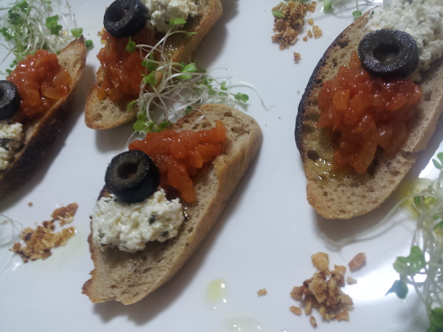 豆乳チーズとトマトソースの天然酵母ブルスケッタ
