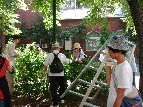 8月28日に約90人の方々が集まってミニ大通りのゴミ拾い、木の下枝切りを行いました。